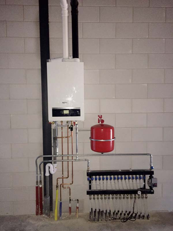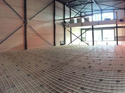 Als installatiebedrijf verzorgen wij in het bedrijfsverzamelgebouw alle installaties waaronder ook het loodgieterswerk, het sanitair en de vloerverwarming (op de staalmatten). De vloerverwarmingsslangen worden door onze monteurs met behulp van een bindmachine razendsnel op de staalmatten bevestigd. Daarbij wordt er voor gezorgd dat de aanvoer- en retourleidingen vlak naast elkaar liggen, zodat een optimale warmtespreiding wordt verkregen. Een snelle en perfecte wijze van werken.